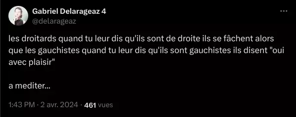 Je préfère ceux qui assument ou ne sont pas sournois en admettant être de droite.